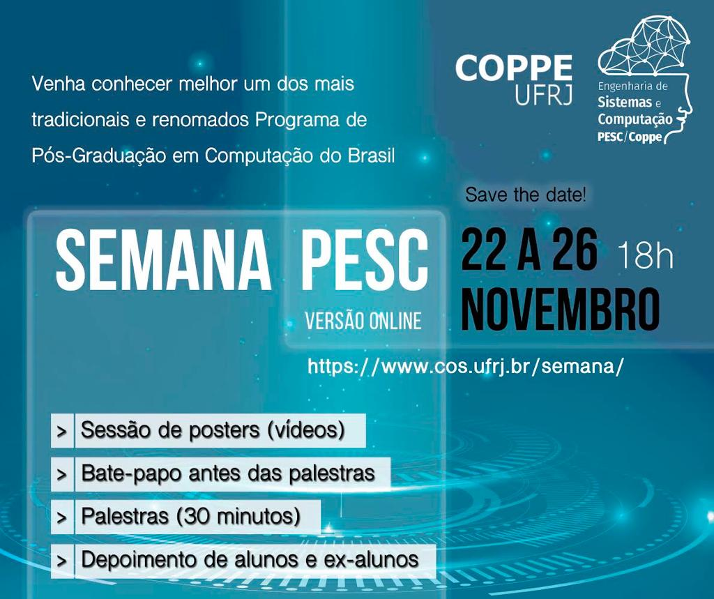 A Semana PESC é um evento onde buscamos aproximar possíveis alunos e membros da nossa sociedade em geral ao dia a dia do Programa de Engenharia de Sistemas e Computação (PESC), ou como carinhosamente chamamos Sistemas.