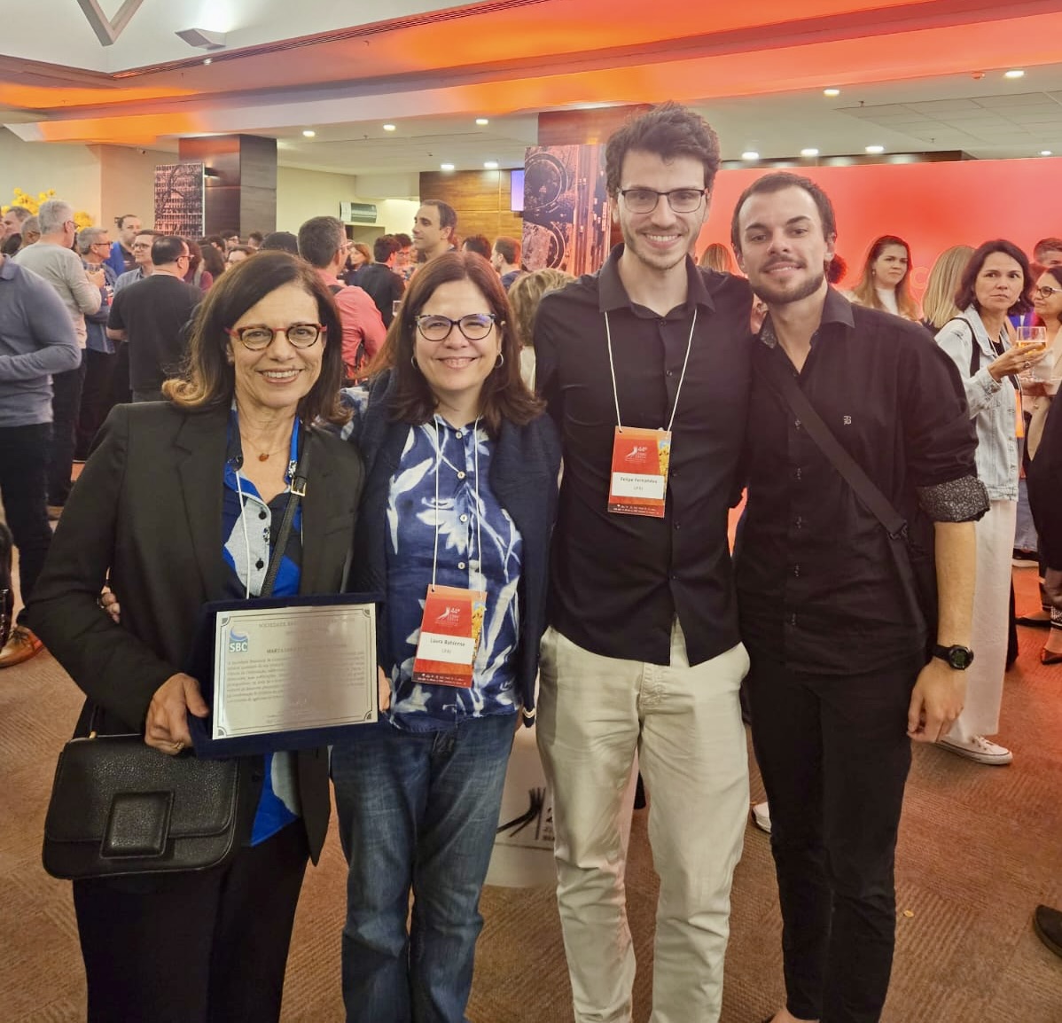 A Profa. Thais Batista, presidente da SBC, entregou a placa da premiação destacando a contribuição científica da Profa. Marta. Em discurso de agradecimento emocionado, a Profa. Marta dedicou o prêmio aos alunos que ela orientou no PESC.