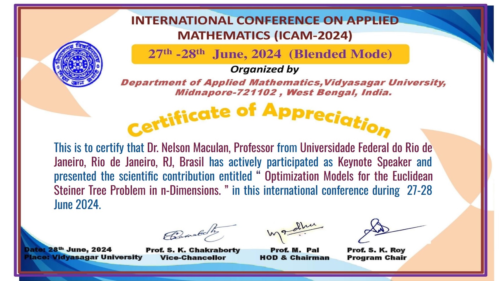 O Prof. Maculan fez sua apresentação no dia 27/06 com o tema Optimization Models for the Euclidean Steiner Tree Problem in n-Dimensions, sendo Chair da sessão o Prof. Bibhas Chandra Giri, Dept. of Mathematics, Jadavpur University.