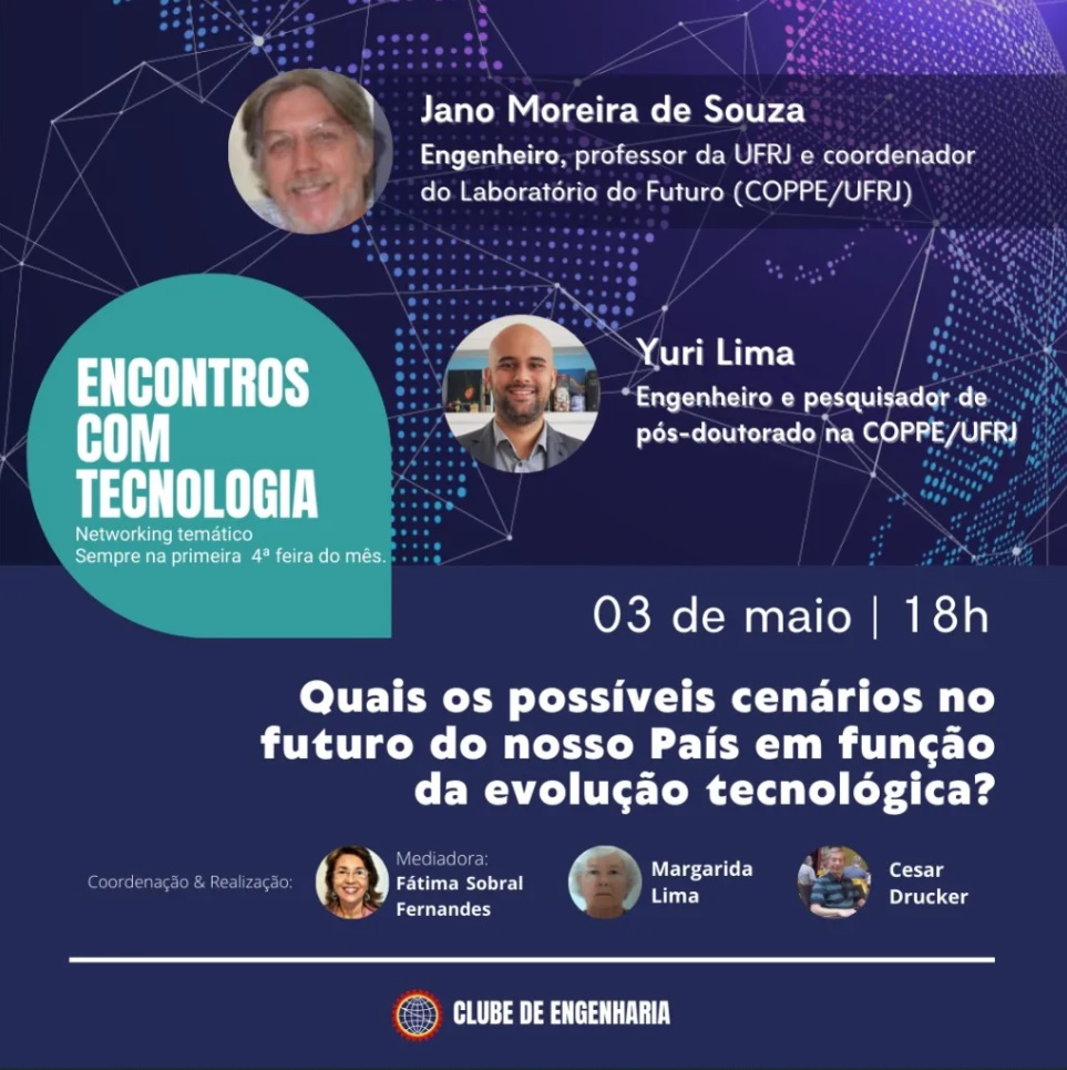 Em toda primeira quarta-feira do mês o Clube de Engenharia realiza o evento "Encontros com Tecnologia", com especialistas para conversar sobre temas que interessam a todos que lidam com inovação, ciência e tecnologia e empreendedorismo de base tecnológica.