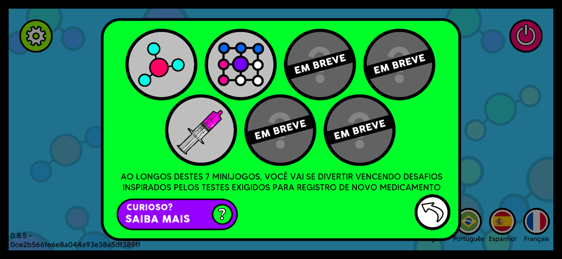 Após o lançamento do SCREENER, jogo de tabuleiro destinado a um público de Pós-graduandos da área de Farmacologia e áreas afins, em novembro de 2021, é a vez do DiscoveRx, jogo digital disponível gratuitamente na plataforma Google play.
